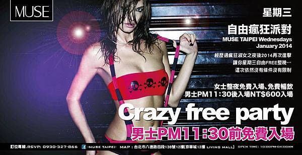 1月每週三-自由瘋狂派對 Carzy Free Party